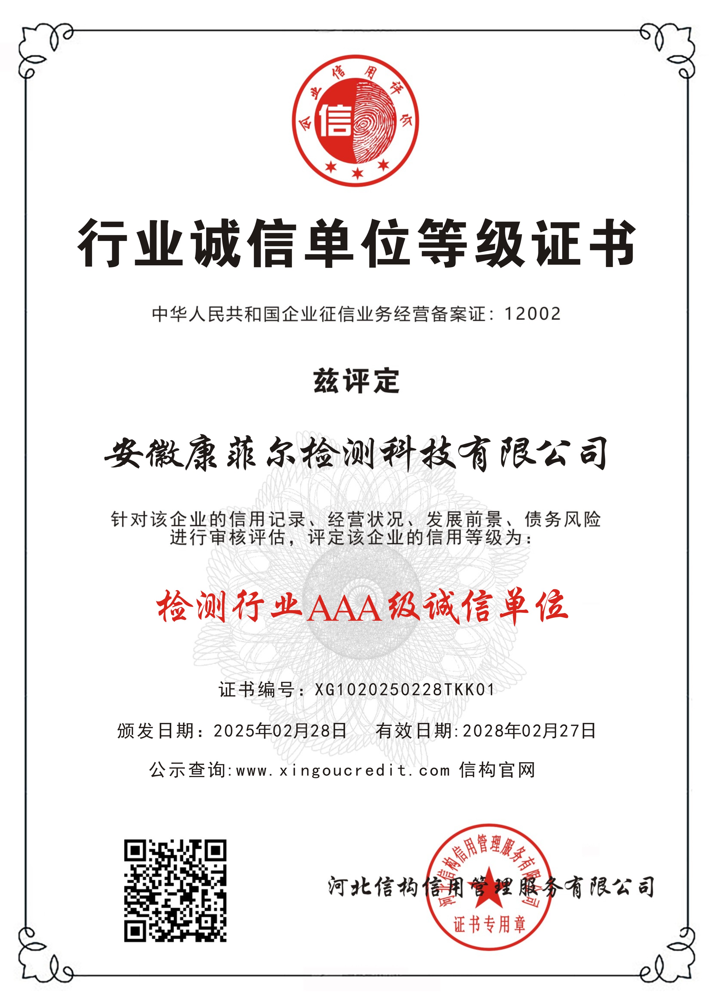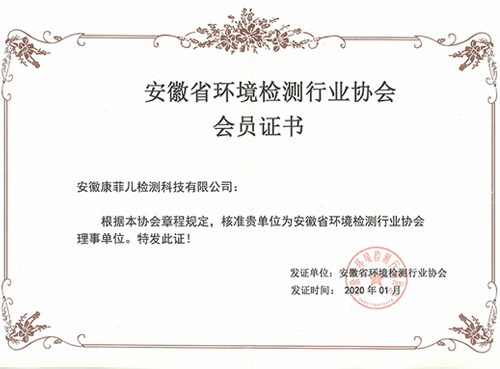 安徽省環(huán)境檢測行業(yè)協(xié)會會員證書